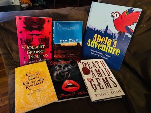 A multi-published author as well as a visual artist, Meehan also plans to use the channel to promote her books, short stories, poems. To date, she has published a western titled “Dry Heat,” a mystery titled “Death Amid Gems,” a romance/romantic comedy titled “Dolbert Springs Holiday,” a horror novella titled “Sycophant,” a children’s book titled “Abela’s Adventure,” and a collection of poems titled “Fanciful Words Whimsically Rendered.” All have been featured on the channel as will future readings at public events. Meagan also plans to upload an announcement about any future publications on the channel as soon as she has a copy of a new book in hand.